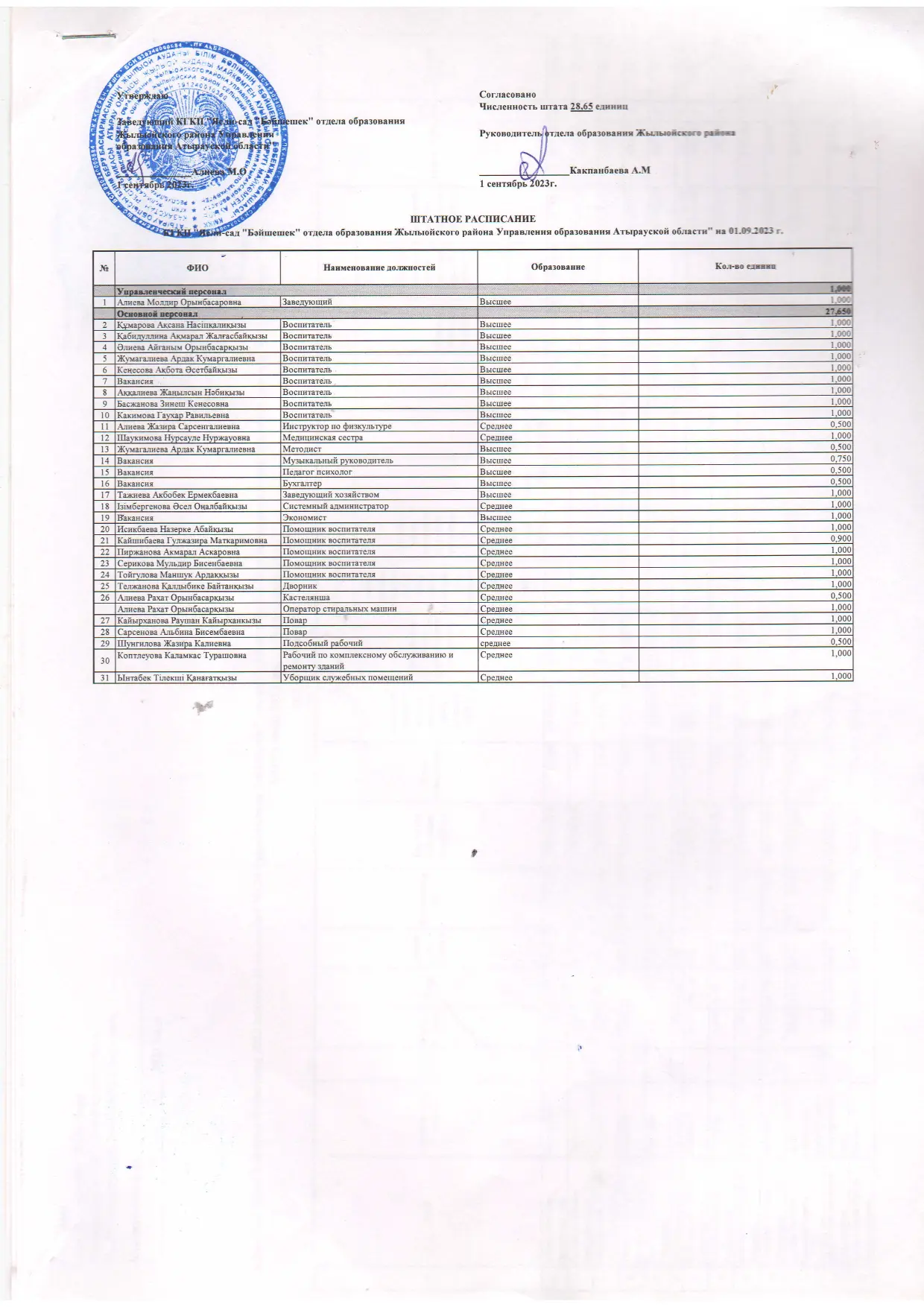 Оқу–тәрбие жұмыстары