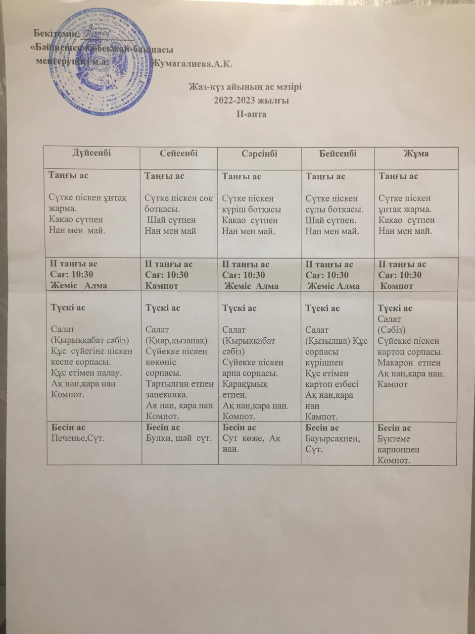 Жаз-күз ай ас мәзірі 2021-2022. I-II апта